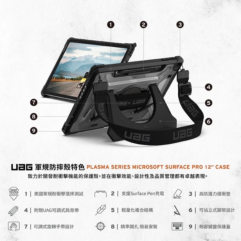 UAG Surface Pro 12吋耐衝擊經典保護殼◆附肩背帶★贈觸控筆+防丟繩